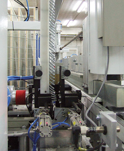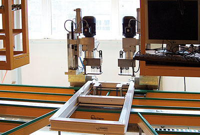 Designed for the vertical integration of an assembly line, with fully-automatic workflow. With hardware depot for pivot- and scissors bearings and/or rotating hinges.
