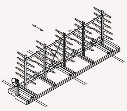 Устройство перемещения двухсторонних стеллажей для длинномерных профилей![]() |