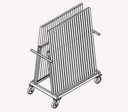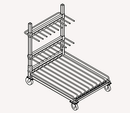 механизмы Тележки для заготовок с горизонтальными, регулируемыми по высоте полками |
